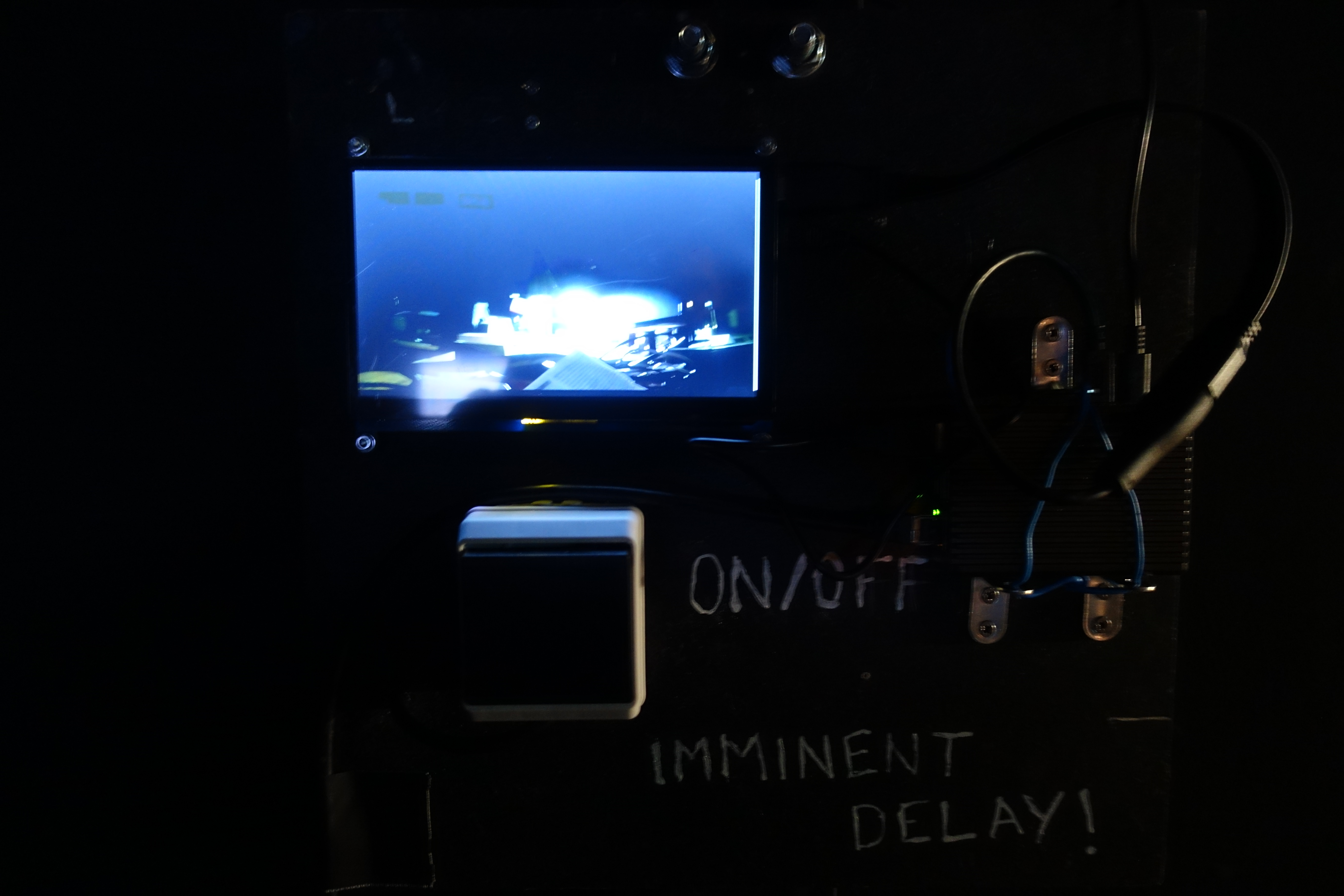The work On/Off establishes telematic proximity to one's own location via a toggle switch. In a certain way, it thematises telematic connections to oneself: A light source hangs above one's own streamed location and can be switched on and off via the network. Background from the STWST Streaming Department: The reduction of content addresses the larger question of what can actually be conveyed via stream. The idea of streaming little or no content did not first arise in STWST during the lockdowns. But especially from then on, there was increased criticism of streams as substitute venues: for example, STWST broadcast empty rooms or underwater concerts for the fish. After concerts played in STWST in front of no one and at the same time as an unstreamed act for the universe, several streaming concerts took place at dawn. Here the waterfront location, the sunrise, the sound setting and the invited artists became equal actors. The work On/Off is a continuation, further reduction and questioning of a reality in 'Imminent Delay'.