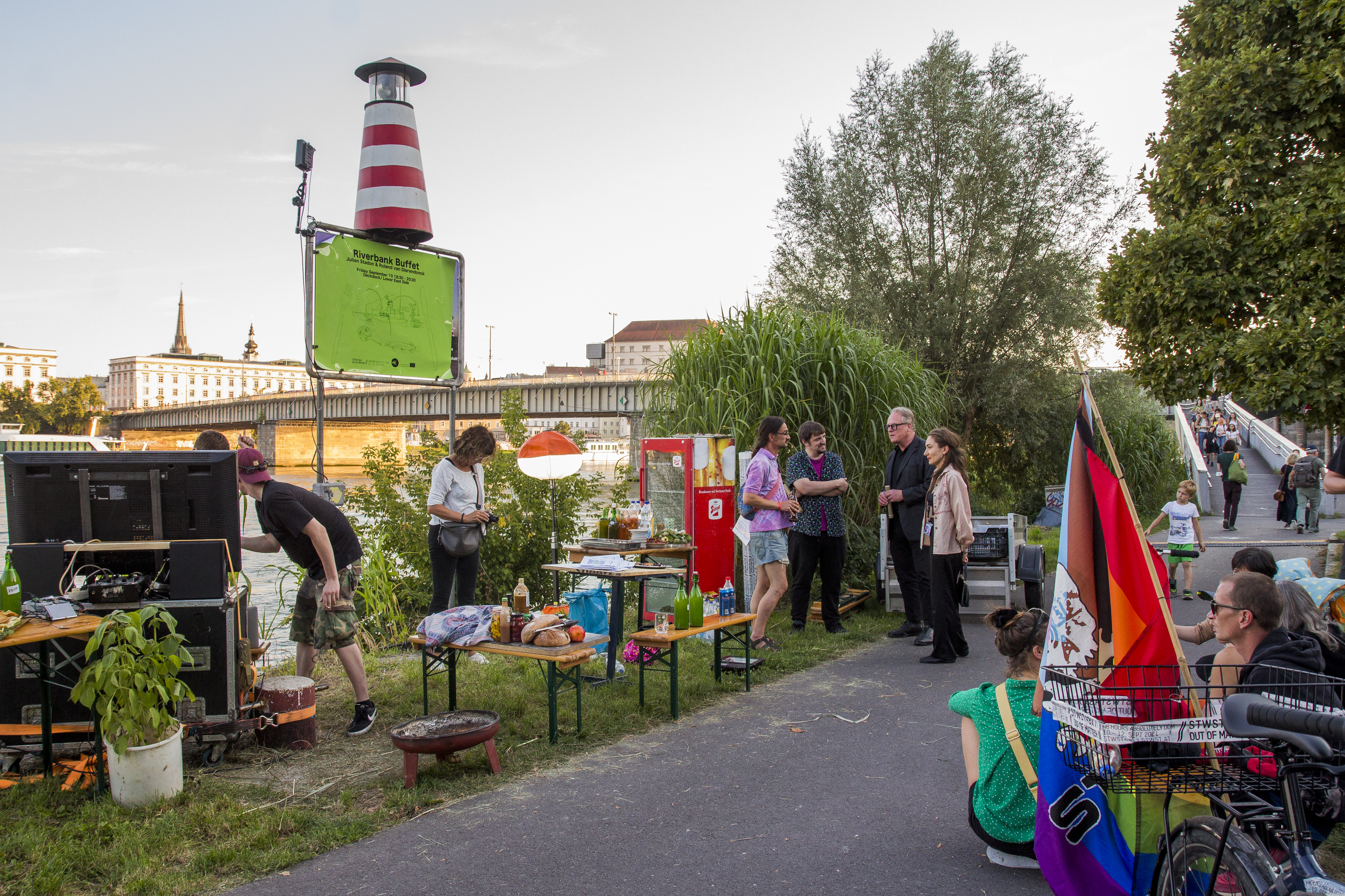 Riverbank Buffet uses public, artistic approaches to raise awareness of food and the environment, using the theme of microbiology as a catalyst for change.