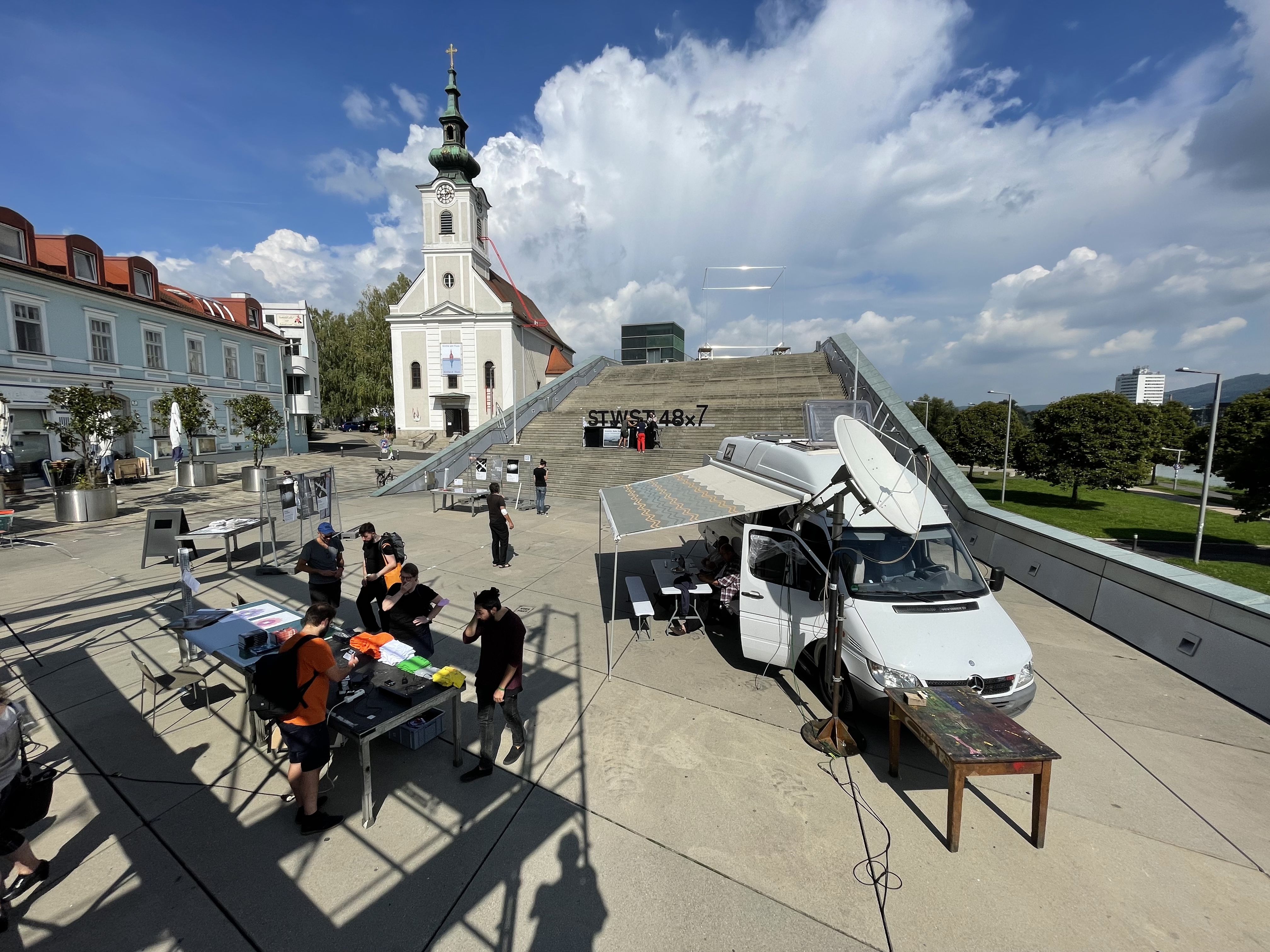 STWST No Content Dptm. is Franz Xaver plus STWST for this project, featuring the Media Camper of Karel Dudesek and Marcus Kabele. The work is directly related to STWST Infolab and Donautics. The image content is subordinate, but comes from STWST theory and research Infolab, Quasikunst and the No Content Dptm.