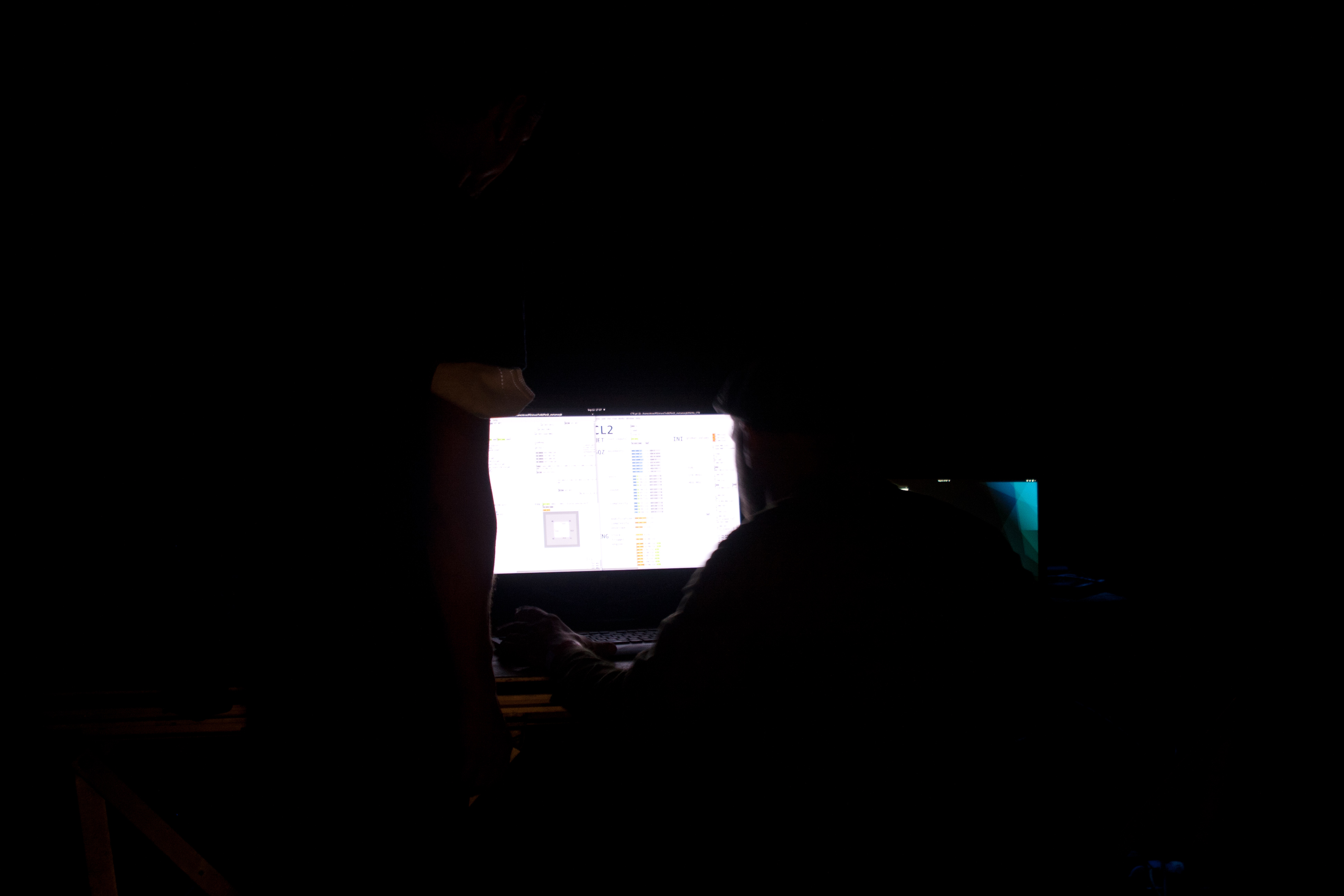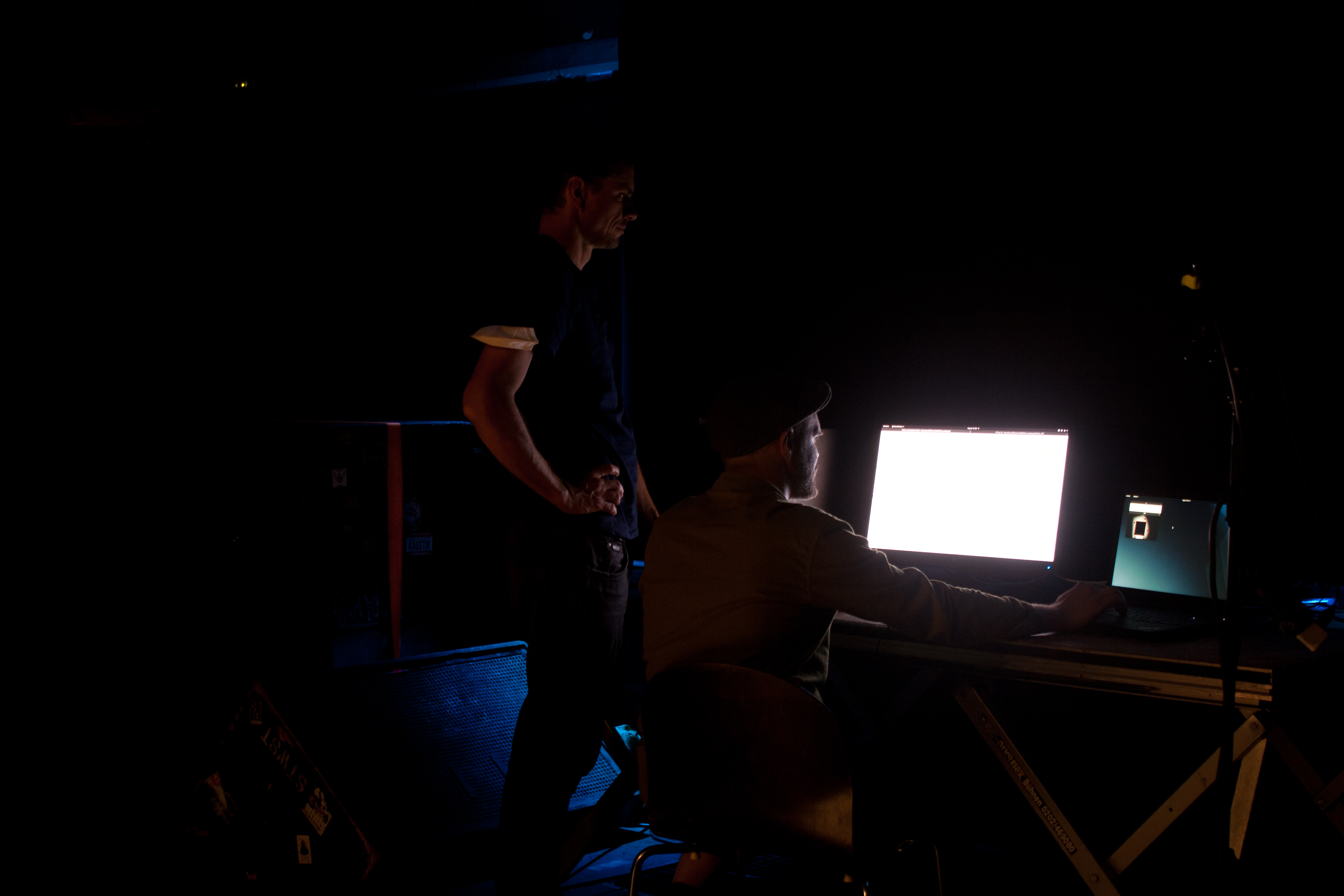 A digital sound machine spans an acoustic wave space by means of groups of sine oscillators. In doing so, it seeks its way between the states of more and less, pulse and surface, narrowness and expanse, consonance and dissonance, cosmos and chaos. The movements of those present in the space influence the movements of the machine in sound and space. Sometimes silence reigns. OOM!