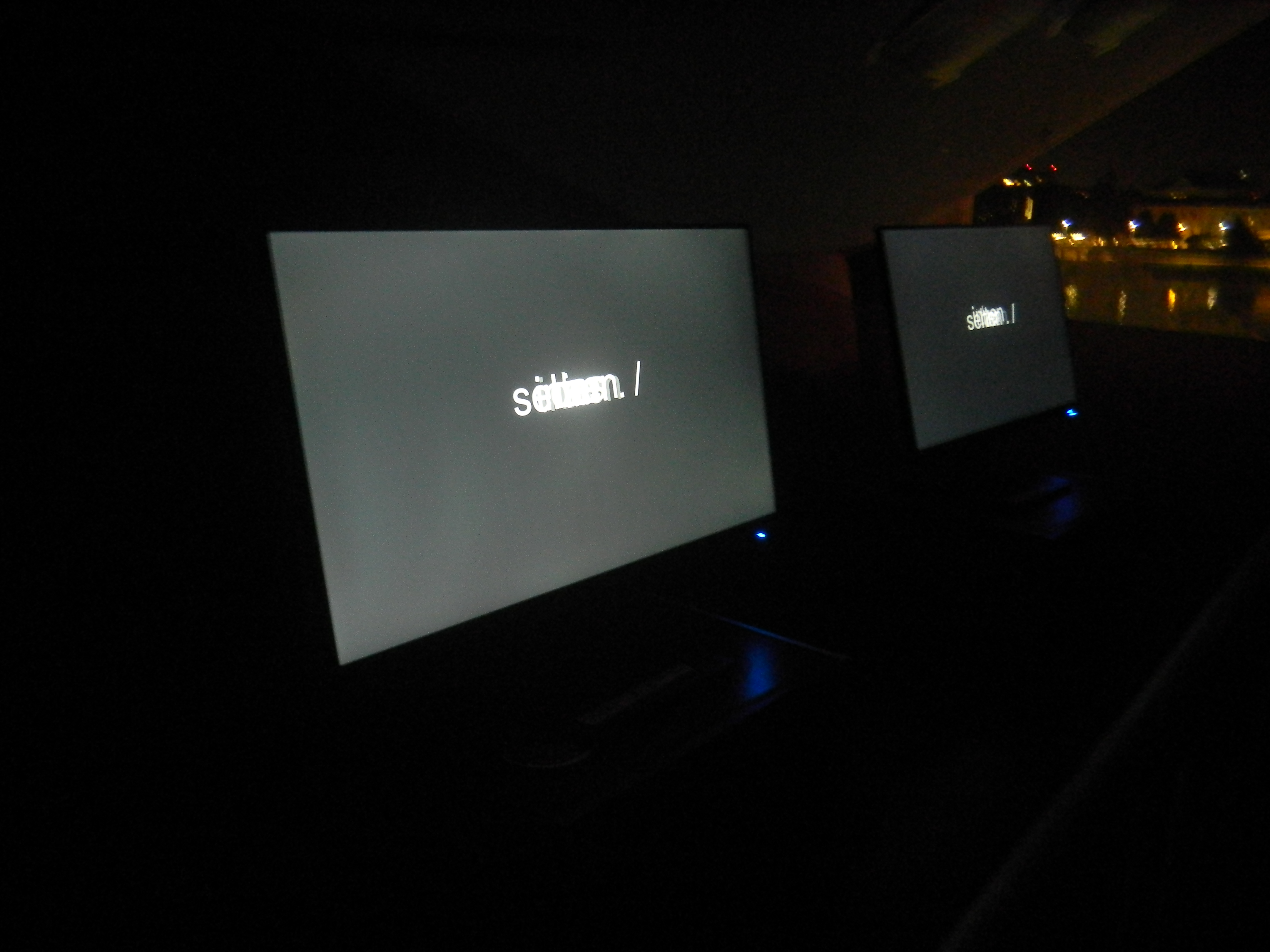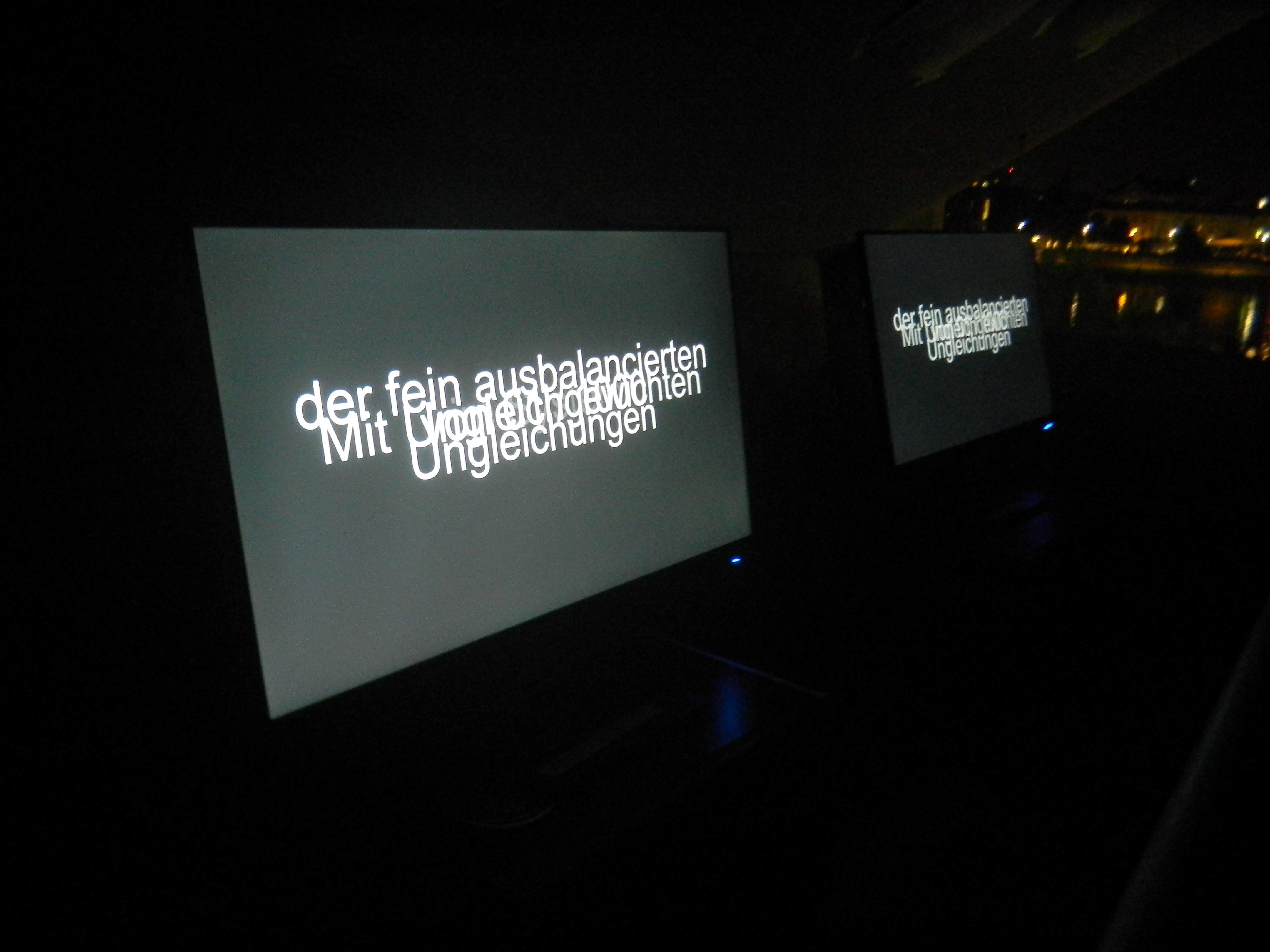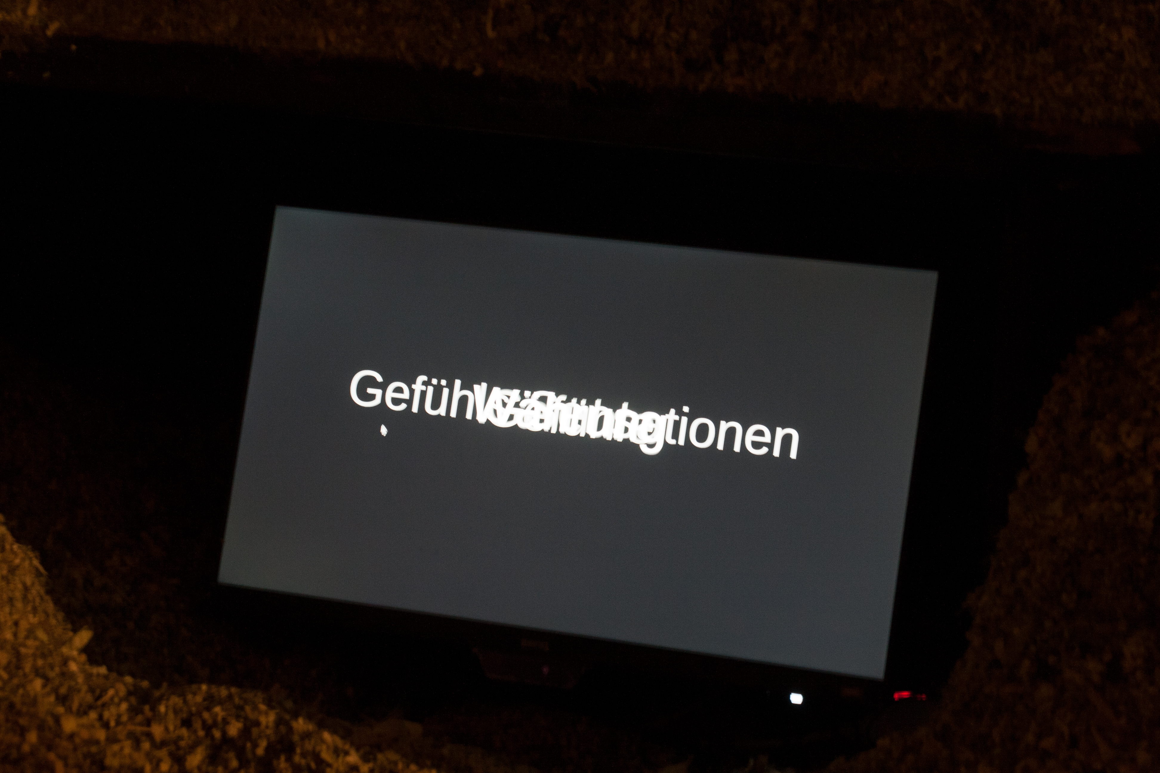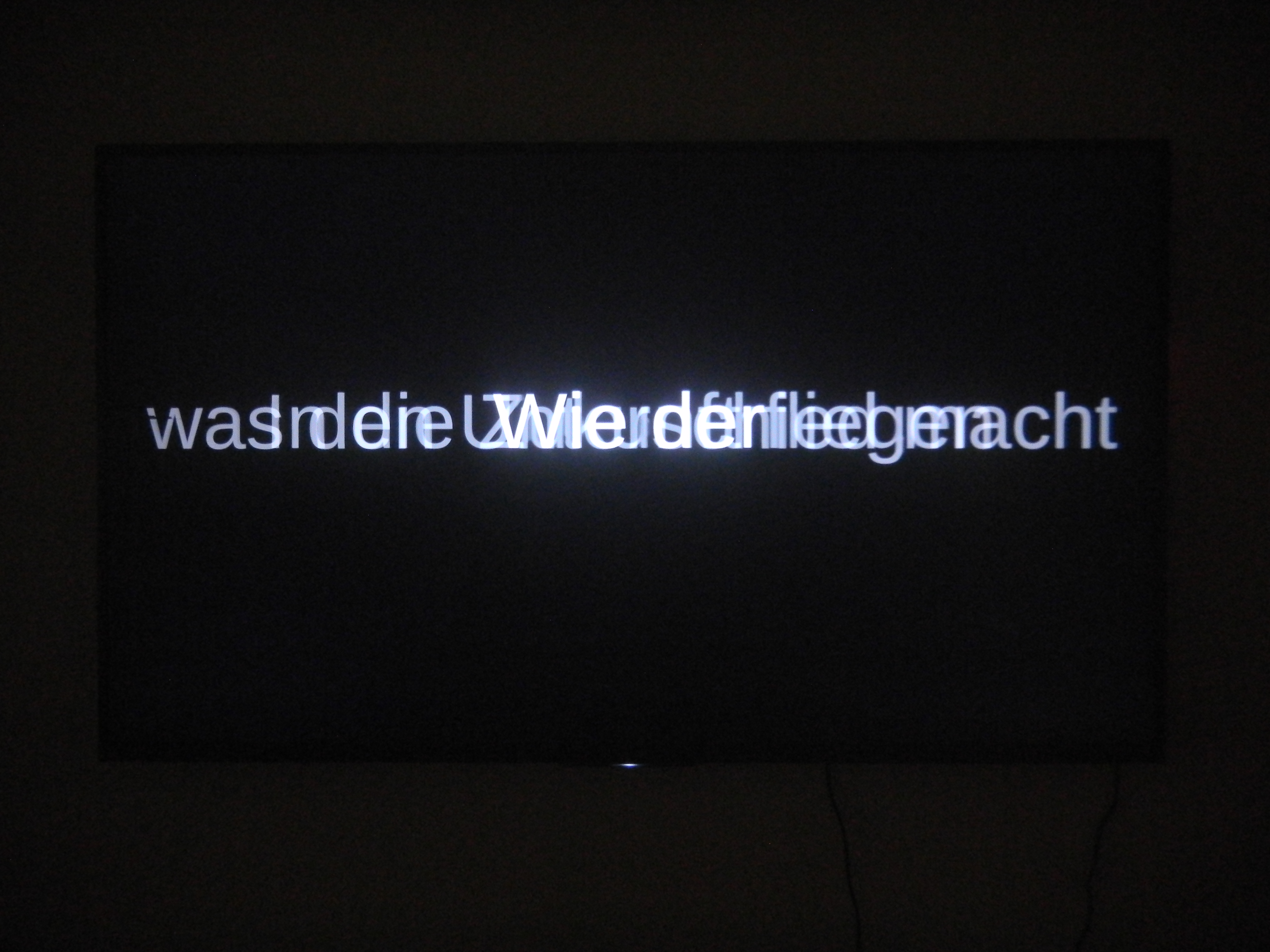 'Nik, oder: Allein im Elektroschock-Zimmer‘ ist ein Wort- und Satzfragment-Scripting, das mit analogen Texterstellungsmethoden arbeitet und in eine Taktung von Tags und Videosequenzen mündet. Auf Screen gezeigt.